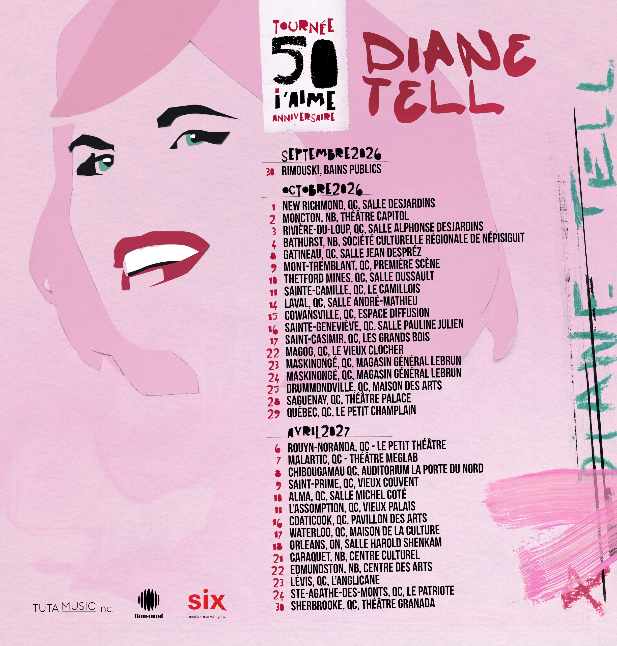 Montréal, septembre 2025 – Intronisée l’an dernier au Panthéon des auteurs et compositeurs canadiens, la légendaire Diane Tell dévoile aujourd’hui « Le Mot et la Chose », premier extrait de son prochain album Polissonne, attendu en 2026. Pour souligner ses 50 ans de carrière, Diane entreprendra la vaste tournée québécoise 50 i’aime dès septembre 2026, qui se prolongera tout au long de l’année 2027.