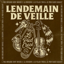 Montréal, novembre 2025 – Le groupe Lendemain de veille – composé de Marc-André Rioux (voix, guitare), Jérémy Gendron (batterie, voix), Danny Déraspe (violon, voix), Louis Godbout (guitare, voix) et Philip Saucier (basse, voix) – fera paraître le EP de 4 chansons Le pied cassé le 21 novembre, juste à temps pour le temps des Fêtes !